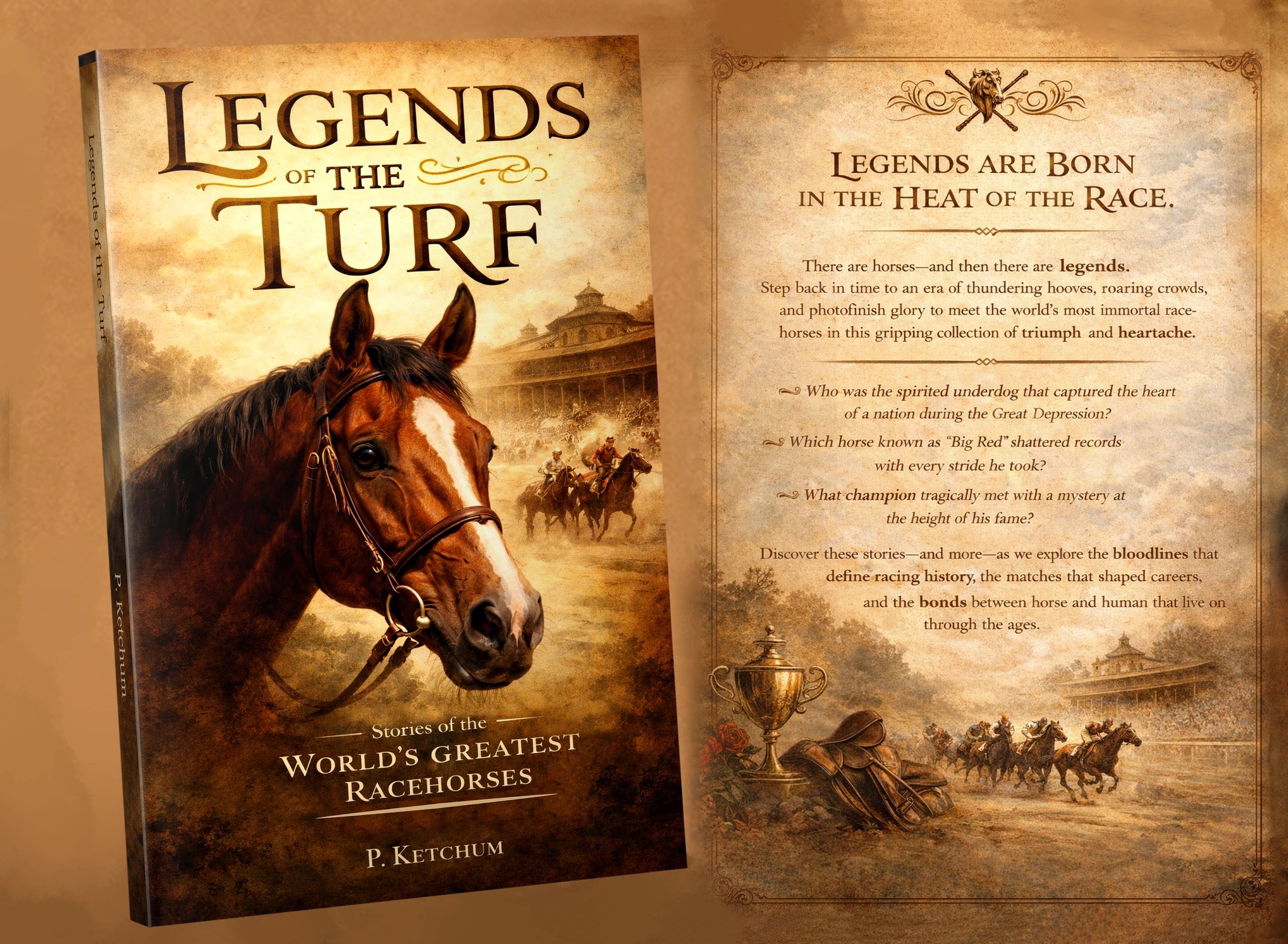 Welcome to the official website of P. Ketchum, author of "Legends of the Turf," a carefully curated narrative collection honoring the greatest racehorses of all time.